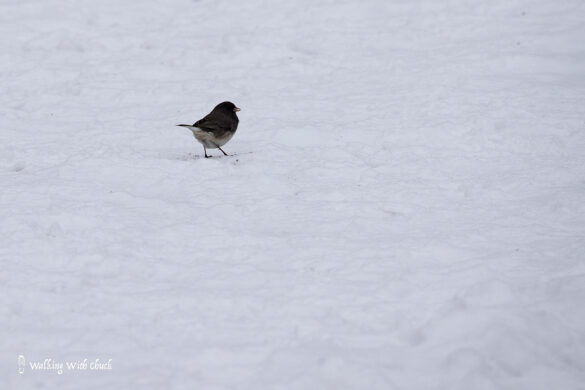 When snow falls heavy, it frosts the trees and blankets the ground with glorious white powder. Big flakes drift in the wind. My little bird friends fluff themselves out. They tuck their heads into their feathers. As they move from tree to tree, they knock little clumps of snow off of branches and leave delicate prints wherever their tiny feet touch. They gather together as if just being near one another gives them comfort in the snow. They don’t sing or chirp, they just squint at me as snow collects on their backs and beaks.