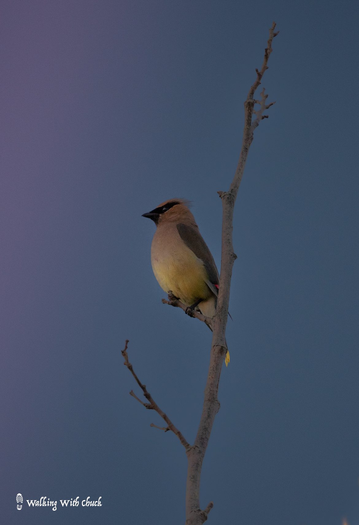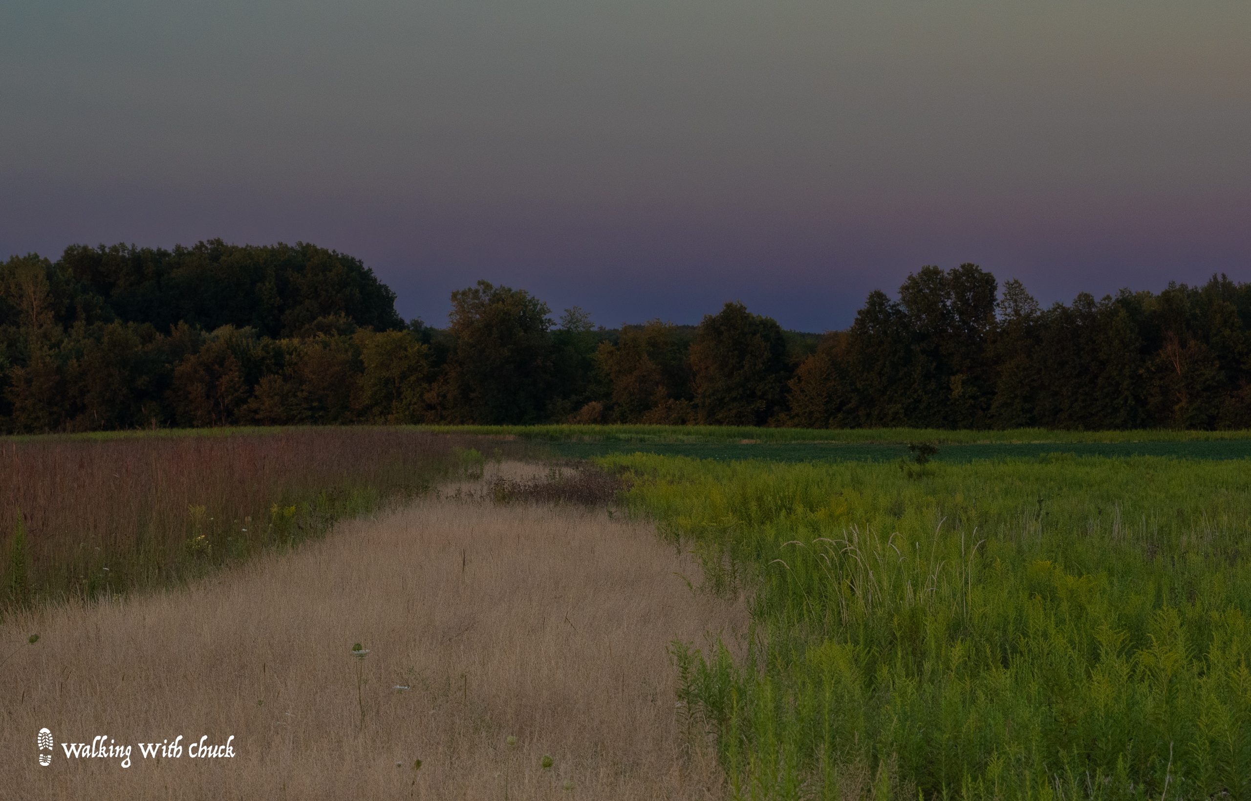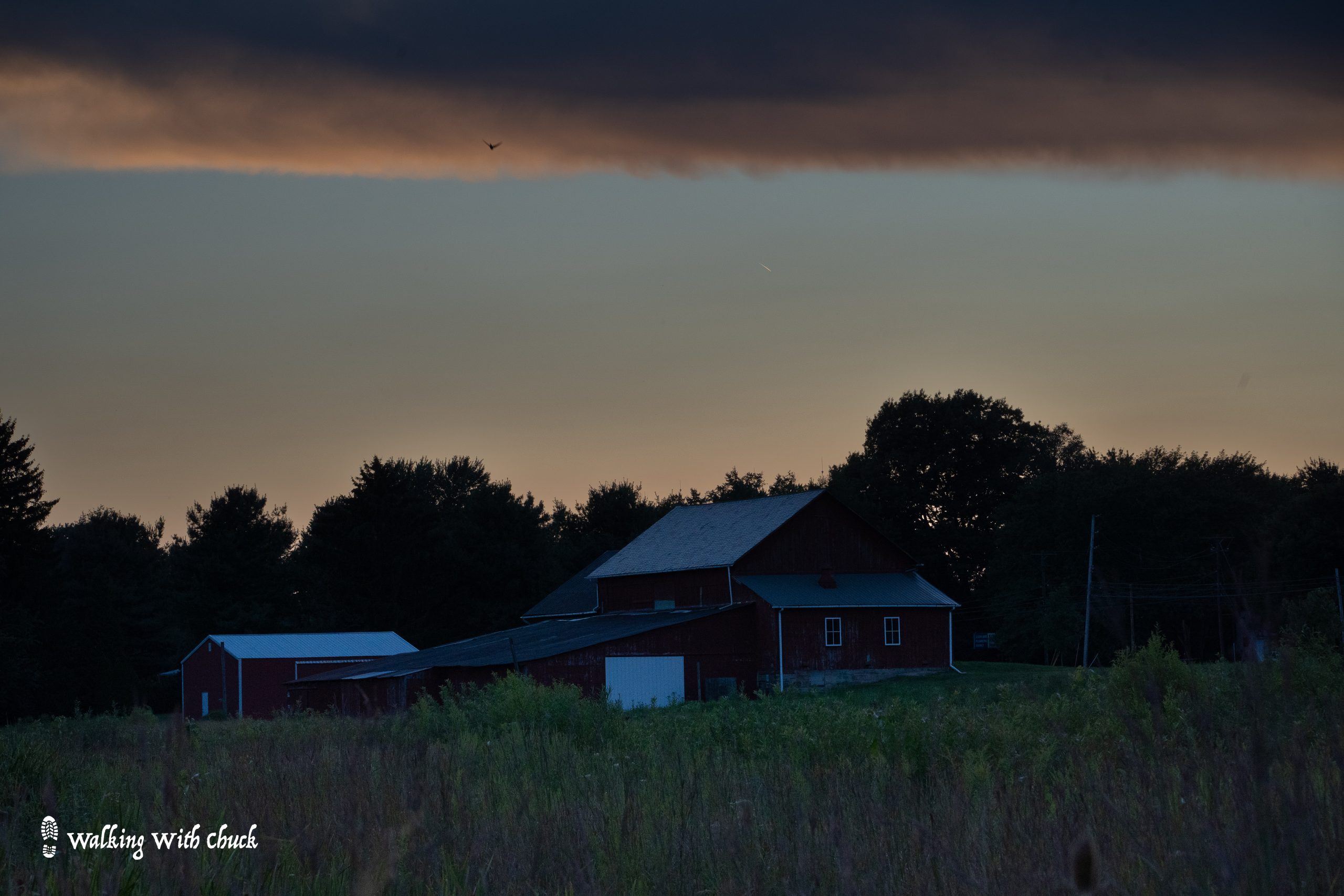 We walked back through fields, watching the sun slip away. A quiet glow hung around the horizon and ignited the clouds like pink embers. Crickets chirped. A flock of Canada geese flew overhead in their v-formation, honking quietly. A cedar waxwing watched the last of the light from a high perch. And then the day was done.