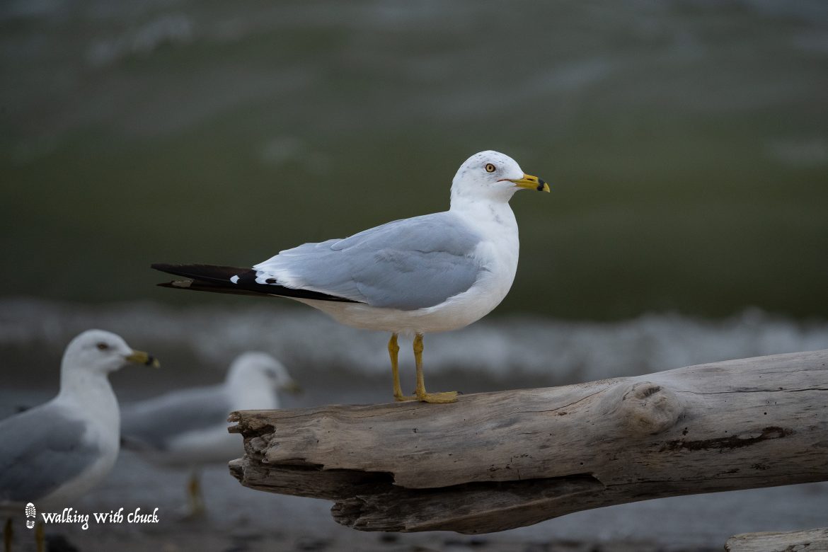 It feels more like the seashore than a lakeside habitat. The wind was brisk and large waves crashed onto the sand. A flock of gulls preened themselves at the water’s edge. We crept up to them slowly and they let us approach until we were standing among them. They are really so beautiful! The ring billed gulls are mostly white with bright yellow feet and eyes. Another larger variety of gull stood among the ring-billed. Their feet and bills were a delicate pink. I think they were glaucous gulls, but I’m not entirely sure – they may have been herring gulls.