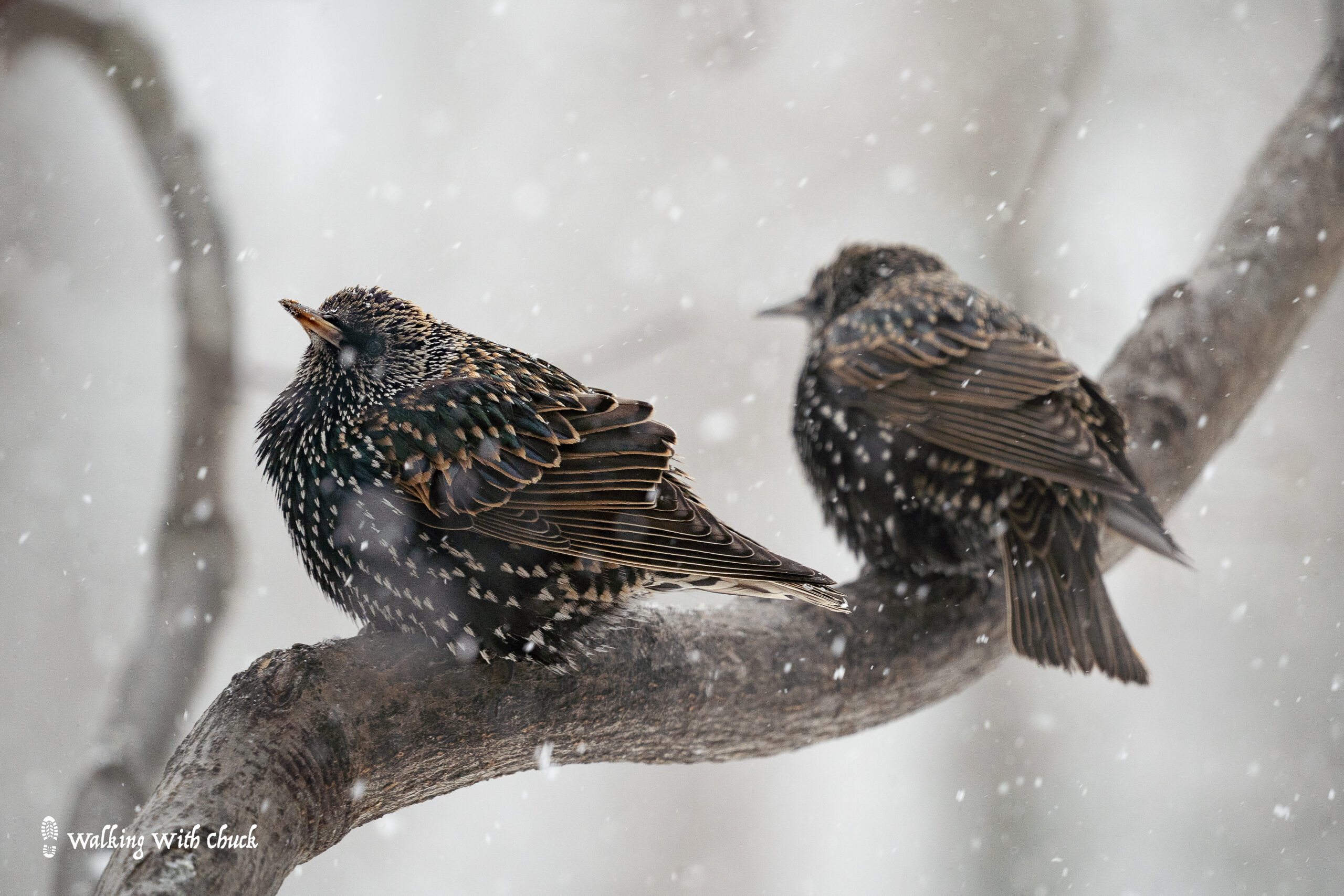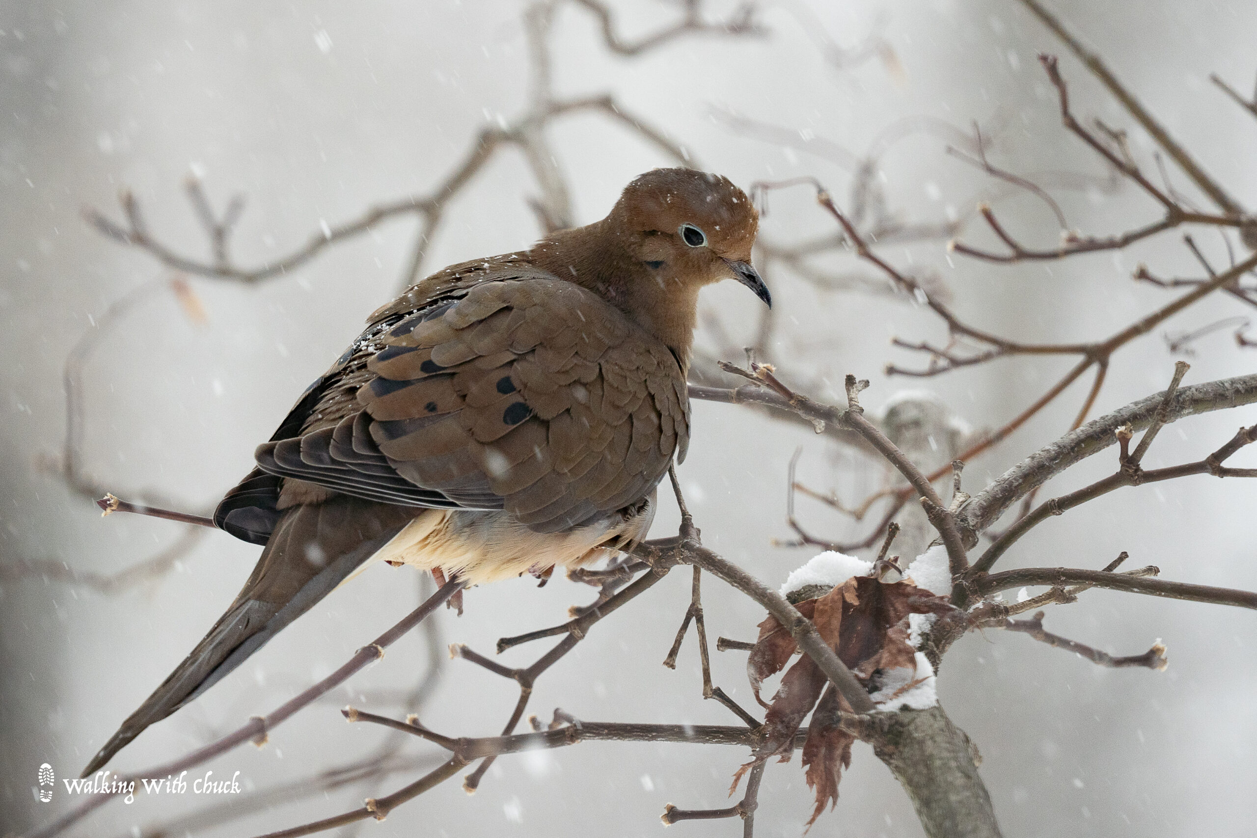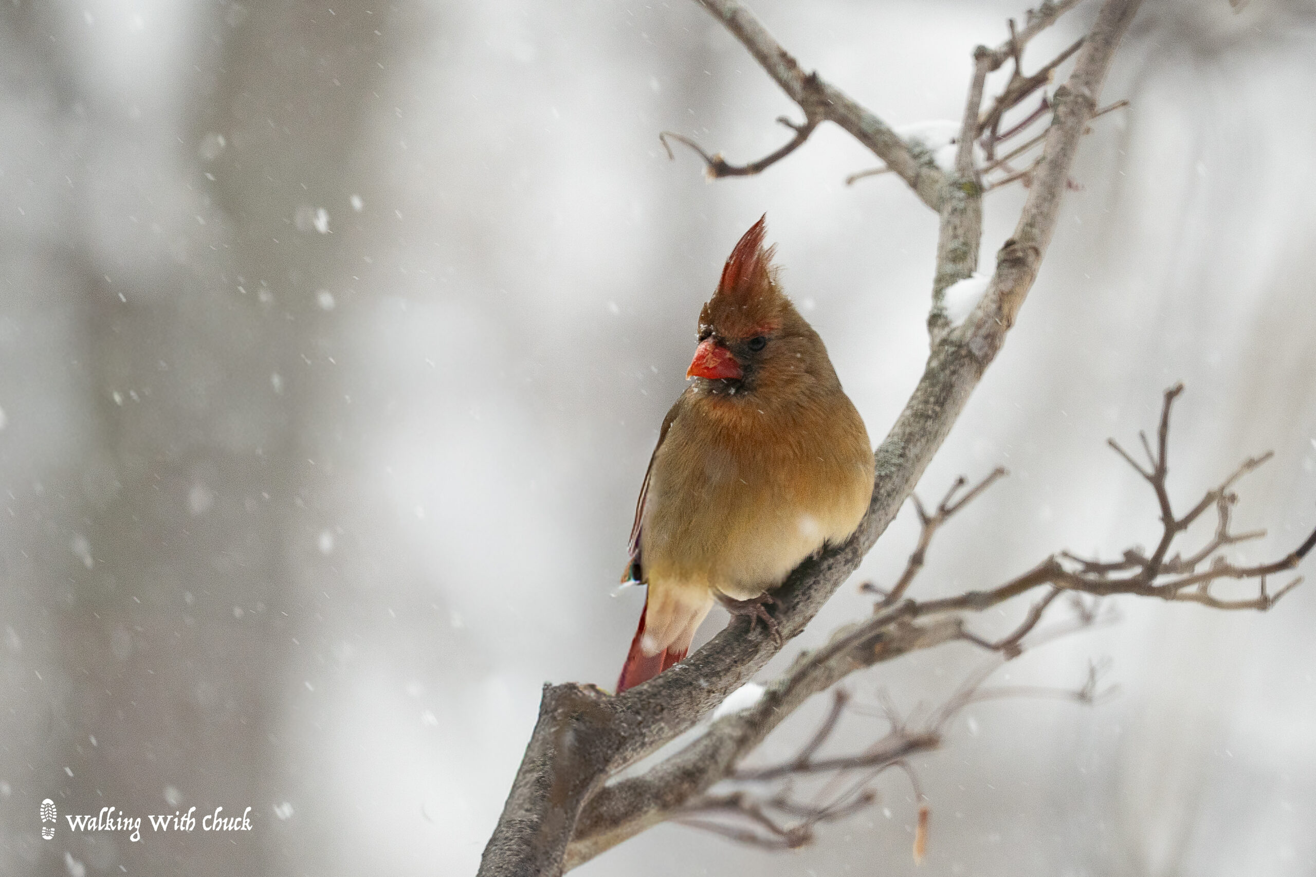 A squirrel scrambled onto a second story window sill. It peered in the window, tucking up its paws to warm them against its chest. My backyard birds fluffed themselves. Every now and then, they shook off the snow that collected on their feathers. I marched through knee-high snow on our walks. Chuck leaped and lunged through the drifts.