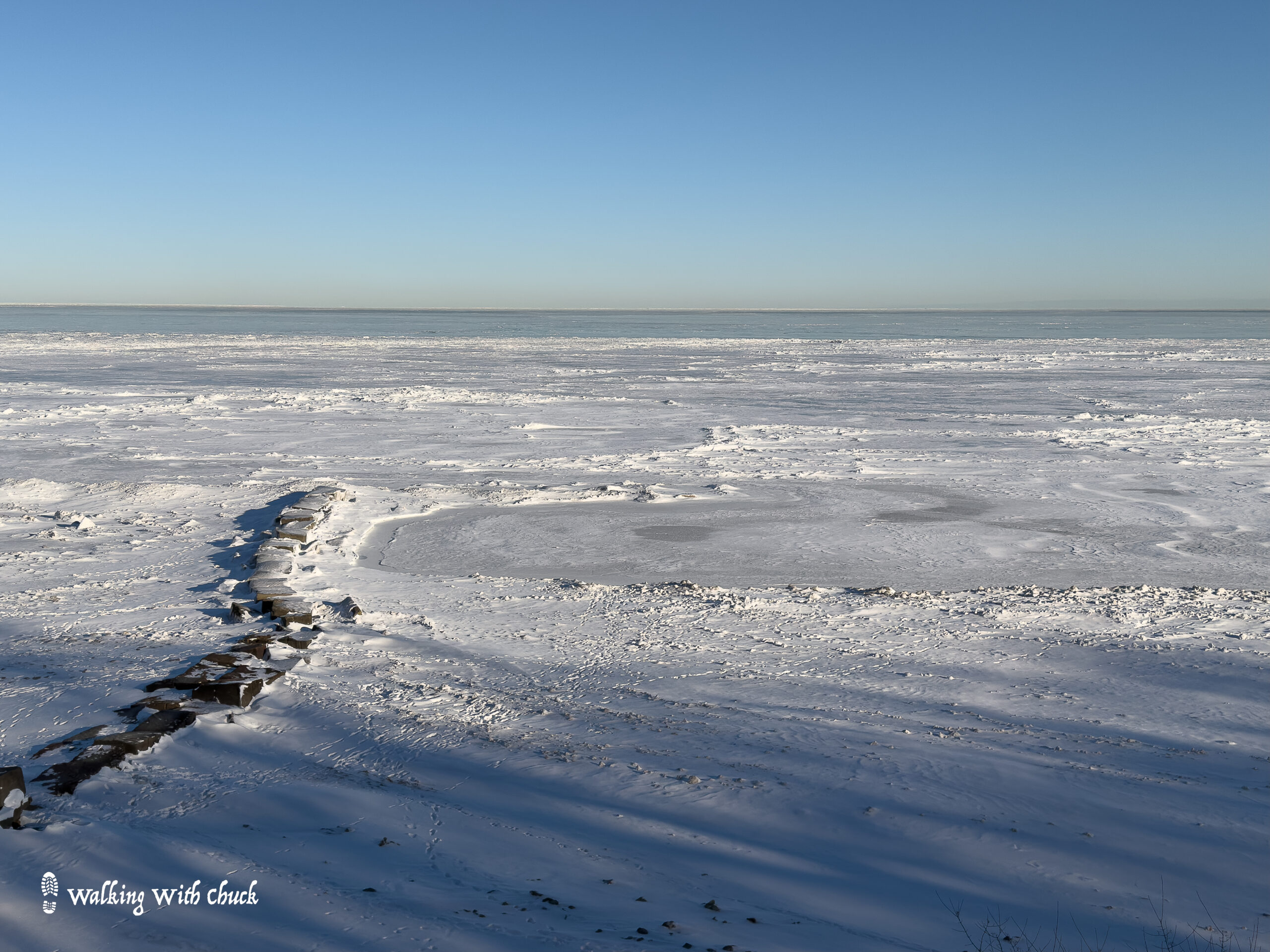 This morning, the sun did rise. Its impotent rays made snowbanks sparkle and trees cast long shadows. It was -7 degrees fahrenheit when we got in the car and headed to Huntington Beach. It was so quiet on the trail. No waves lapped on the beach. The creek did not gurgle between its banks. The birds didn’t sing. The squirrels didn’t chatter. The lake looked like a lunar landscape, harsh and inhospitable. In the distance, downtown Cleveland steamed.